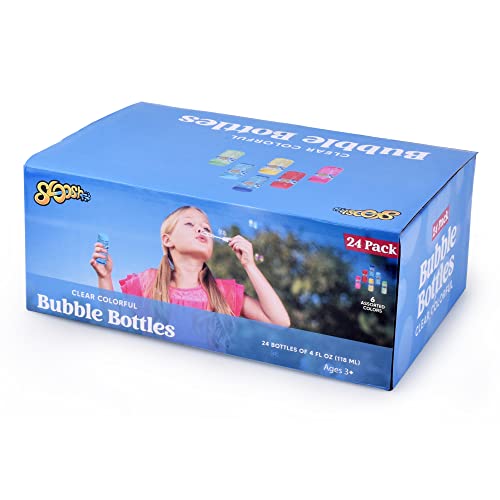 • Sloosh 24 Pack Assorted Colors Bubble Solution Bottles with Wand (4 Oz) for Kids' Bubble Toys Summer Activity, Easter, and Assortment Party Favors