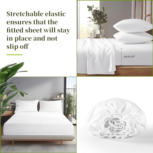 • Shilucheng 100% Viscose Derived from Bamboo_ Sheets Queen Size 4pcs - Ultra Cooling & Silky Soft Bed Sheets, 16" Deep Pocket, Perfect for Hot Sleepers, Hotel Bedding Sheets (White)