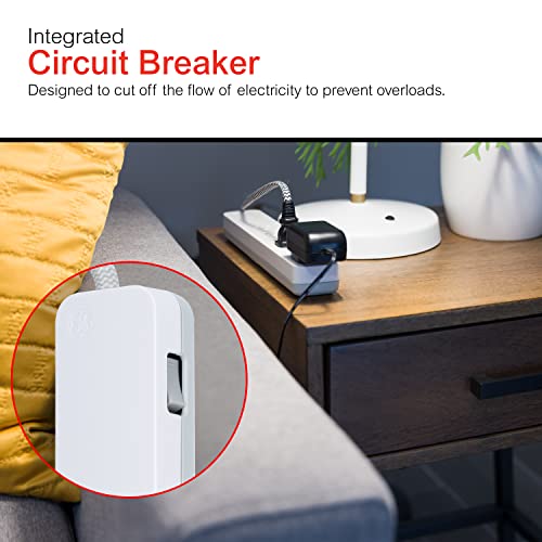 GE 6-Outlet Surge Protector, 20 Ft Braided Extension Cord, Power Strip, 840 Joules, Flat Plug, UL Listed, Black, 62941, Braided White