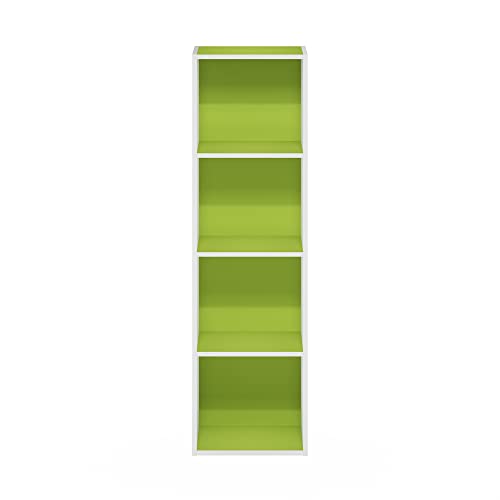 Furinno PASIR Book Shelf, 4-Tier Modern Bookshelf, Open Shelves Bookcase 9 x 12 x 42, for Living Room, Bedroom, Home Office, Green/White, White/Green, 4-Tier Cube