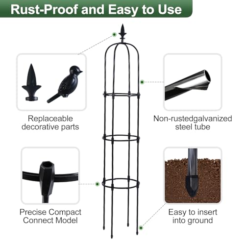 Lalahoni Garden Trellis for Climbing Plants Outdoor, 6 feet Tall Garden Obelisk Trellis Climbing Plant Support Potted Vine Flower Rose Clematis Vegetable Pea Bean Cucumber Trellis Raised Bed, 2 Pack, 67"-2PCS Round Obelisks