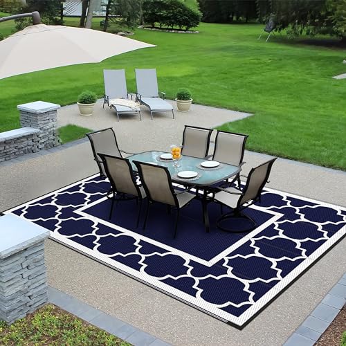 GENIMO Outdoor Rug 8' x 10' Patio Waterproof, Foldable Reversible Plastic Straw Area Rugs Mat for Camper Decor, Outside Carpet for Rv, Deck, Porch, Picnic, Beach, Balcony, Blue & White, Navy Blue & White, 8' x 10' (Rectangular) Item Sku: