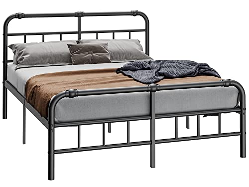 • FSCHOS Full-Size-Bed-Frame-with-Headboard & Footboard, 14 Inch High, Metal Platform Bed-Frames-Full, Premium Steel Heavy Duty Bed Frame No Box Spring Needed, Easy Assembly, Black