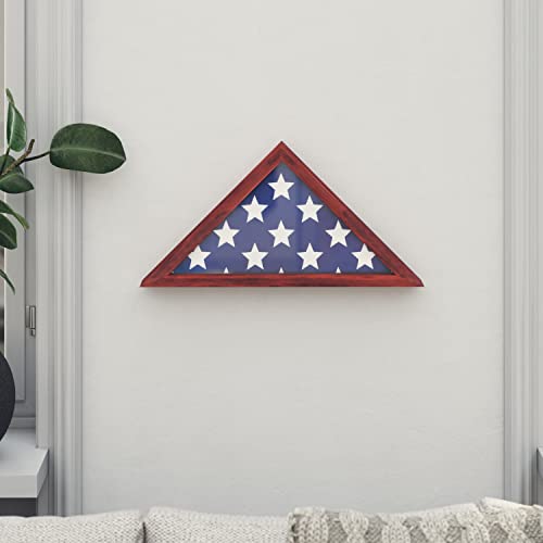 HBCY Creations Flag Display Case for 5' x 9.5' American Veteran Burial Flag Solid Wood Cherry Finish Frame with Glass Front with Wall Mount or Standing Display, Flag Box Display Case for Burial Flag, 9.5'x5' flag case