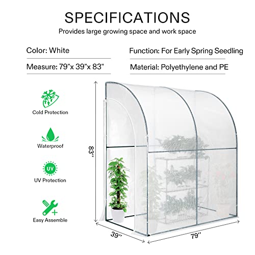 • VIVOSUN Mini Lean-to Greenhouse, 6.6’ x 3.3’ x 6.9’ Portable Wall House with White PE Cover and Shelf for Compact Garden 79x39x83-Inch