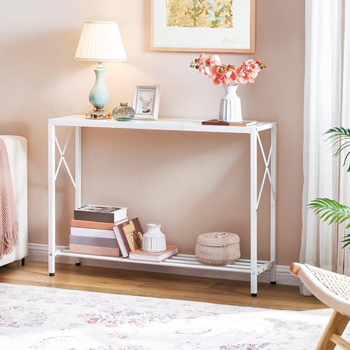 • Tajsoon Console Table 41.8”, 2-Tier Entryway Table Narrow Sofa Table with Shelves, Entrance Table with Stable X-Frame, for Entryway, Hallway, Living Room, Foyer, Corridor, Office, White