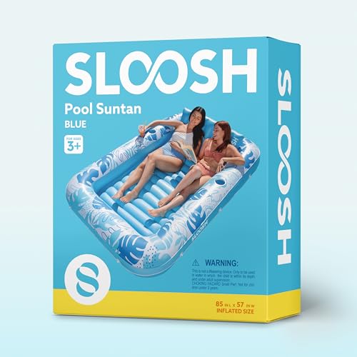 • SLOOSH Inflatable Tanning Pool Lounger Float, 85" x 57" Extra Large Pool Floats Adult with Pillow, 4 in 1 Suntan Tub Raft Floatie,Sunbathing Bed Lounge for Water Blow Up Ball Pit Party Gifts, XL-Blue