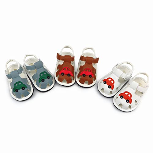 WILLFUN Baby Boys Girls Summer Squeaky Sandals Infant Premium Rubber Sole Closed-Toe Non-Slip Shoes for Toddler First Walkers, Car/Brown, 6 Toddler