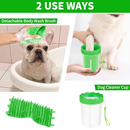• Comotech Portable Pet Paw Washer - Silicone Brush with 3 Absorbent Towels for Small Dog Breeds (Green)