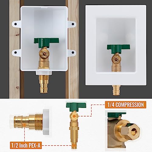 • SUNGATOR Pex A Ice Maker Outlet Box, 1/2 Inch Pex Expansion Inlet x 1/4 Inch OD Compression Outlet, Ice Maker Valve Wall Box with 2 Expansion Rings, Suit for Refrigerator, Water Dispenser