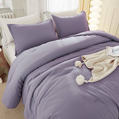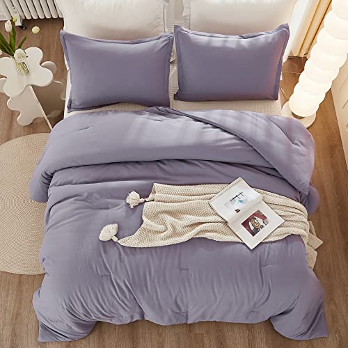Litanika Grayish Purple Comforter Set California King Size, 3 Pieces Cal King Lightweight Solid Bedding Comforter Set, All Season Fluffy Bed Set (104x96In Comforter & 2 Pillowcases), 19 - Grayish Purple, California King (104"x96")