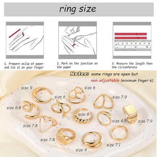 • FAXHION 12PCS Gold Stackable Rings Set for Women, 18K Gold Plated Open Stacking Knuckle Ring, Adjustable Chunky Signet Band Statement Ring for Gift