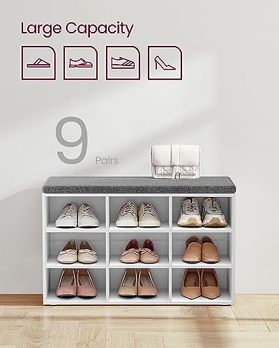VASAGLE CUSTOS Collection - Shoe Bench, Storage Bench with Padded Seat, Entryway Bench with 9 Compartments, for Bedroom, 11.9 x 30.9 x 18.9 Inches, Cloud White and Dove Gray ULHS009W14, Cloud White + Dove Gray, 9 cubbies
