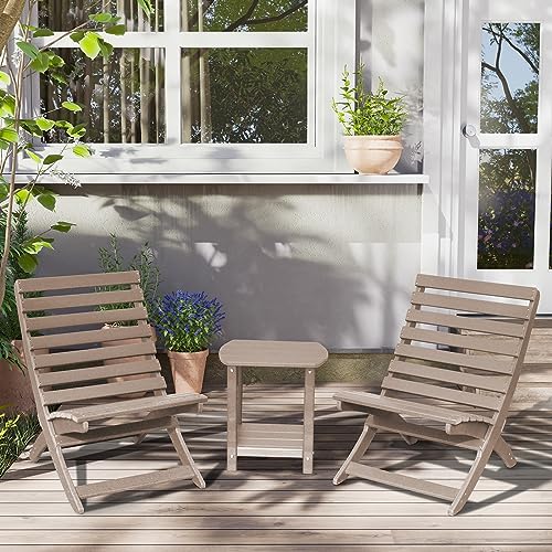 GARDENSTAR Adirondack Square Outdoor Side Table,2-Tier Storage Patio Side Table, HDPE End Tables for Backyard Pool Porch Garden Lawn, Teak, a:Oval 2-Tier