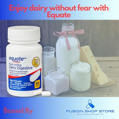 FUSION SHOP STORE Smart choices, meaningful life! Lactase Fast Acting- Equate Dairy Digestive Supplement, 60ct (Pack of 1), Set with Exclusive Fusion Shop Store Portable Keychain Case (1), 60 Count (Pack of 1)