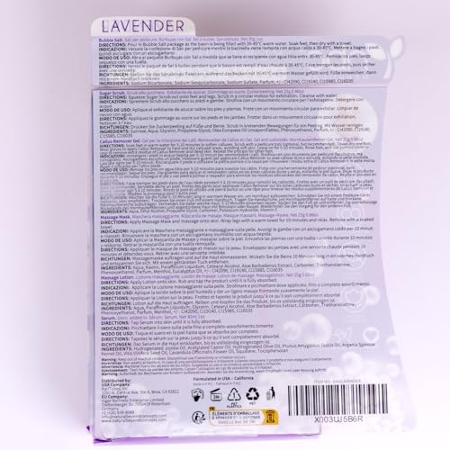 • nbc BeautiLab Pedicure Kit Foot Soak Set: Bubble Salt, Sugar Scrub, Massage Mask, Massage Lotion in a Box, 4 Step Foot Spa Kit for Dry Feet,Tired Feet(Lavender)