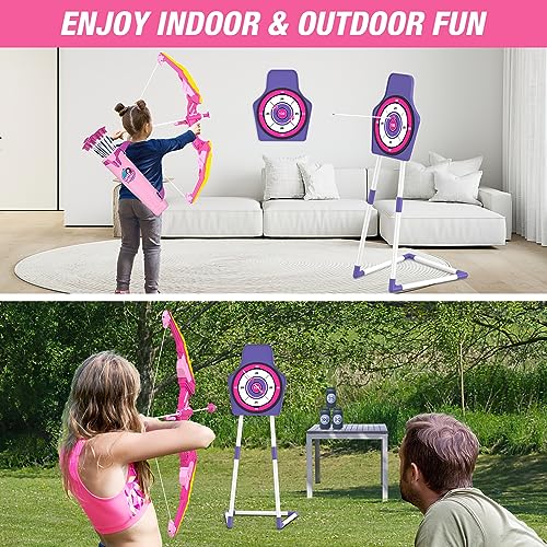• HYES Bow and Arrow for Kids, LED Light Up Archery Set with 12 Suction Cup Arrows, 1 Standing Target, 3 Score Targets & 1 Quiver, Indoor Outdoor Sport Gifts for Boys Girls Ages 4-12, Yellow