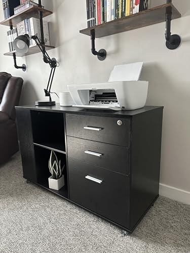 YITAHOME File Cabinet with Charging Station, Mobile Lateral Filing Cabinet with Lock for Home Office, Printer Stand with Open Storage Shelf, Fits A4, Letter, Legal Size Files, Office Furniture, Black Item Sku: