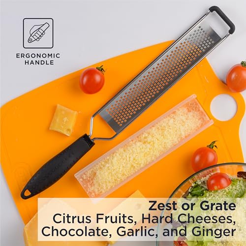 • Deiss LUX Fine Grater & Lemon Zester, Parmesan Cheese Grater Handheld - Spices, Citrus Fruits, Hard Cheeses, Garlic, Chocolate, Nuts, Ginger Grater - Vegetable Shredder & Stainless Steel Grater