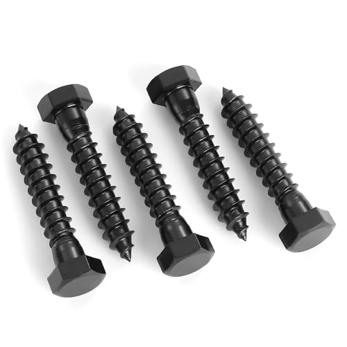 • 1/4" x 1" Hex Head Lag Screws Bolts, External Hex Drive, Stainless Steel 304, Black Oxide, Hexagon Head Wood Screws, Fully Threaded, 20 PCS