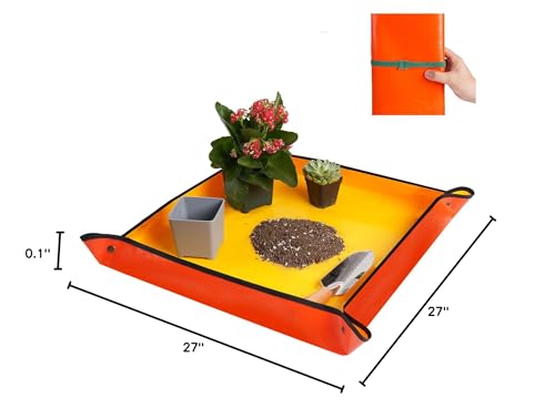 • HNXTYAOB Repotting Mat for Indoor Plant Transplanting and Potting Soil Mess Control Portable Succulent Planting Potting Tray Gardening Gifts for Women Men Plant Lover Gifts (Orange 27" x 27")