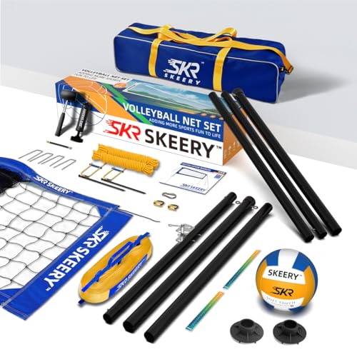 • SKEERY Outdoor Heavy Duty Volleyball Net Set, Anti-Sag Design, Adjustable Aluminum Poles, Portable Volleyball Net for Backyard,Grass and Beach(Blue)