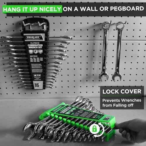 • SWANLAKE GARDEN TOOLS 15-Piece SAE Wrench Set, V Notch Premium Combination Wrenchs Set, SAE 1/4" to 1", Max Torque, 12-Point, Chrome Vanadium Steel, with Storage Rack