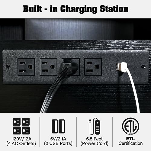 • TC-HOMENY 55-75 Gallon Aquarium Stand with Charging Station and Cable Holes, Metal Fish Tank Stand with Storage Cabinet , 51" L x 19.5" W Tabletop, 880LBS Capacity, Black