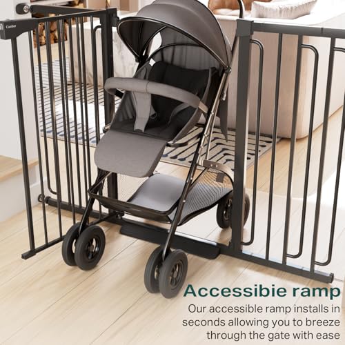• Cumbor 36" Extra Tall Baby Gate for Stairs, 29.7-57" Extra Wide Dog Gate for Doorways Hallways, Pressure Mounted Child Gate for Wide Opening, Auto Close Personal Safety for Babies and Pets, Black