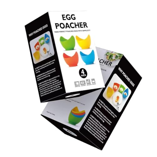• Mikim Egg Poachers Silicone Egg Poacher Cups with Ring Standers, Nonstick Egg Poaching Cups Poached Egg for Stovetop Air Fryer, BPA Free Egg Cooking Cups with Extra Oil Brush, 4 Pack
