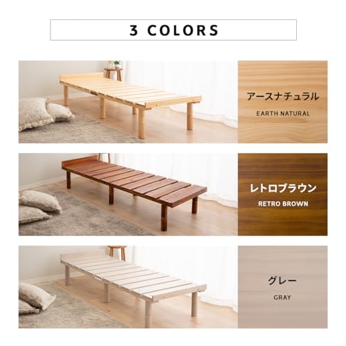 • EMOOR Wood Slatted Floor Bed Frame OSMOS Daybed (26x73in) for Japanese Futon Mattress Solid Pine (Earth-Natural), Height Adjustable (2/7/12in) Tatami Mat