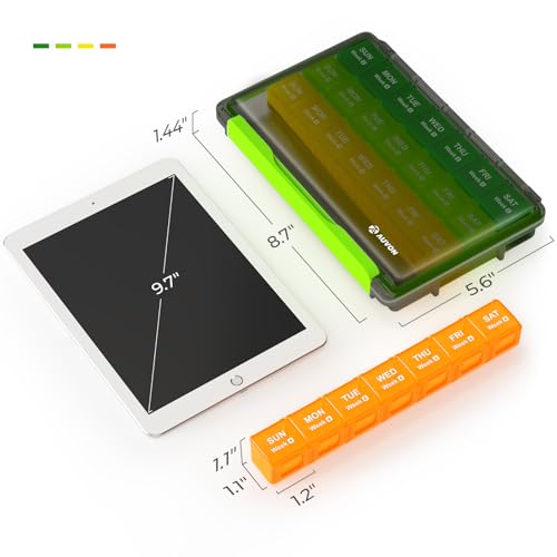 • AUVON Moisture-Proof Monthly Pill Organizer, Large 28 Days Pill Box Case with Removable 4 Weeks Medication Organizer Rows, Travel-Friendly to Store Fish Oils, Vitamins, Supplements, Medications
