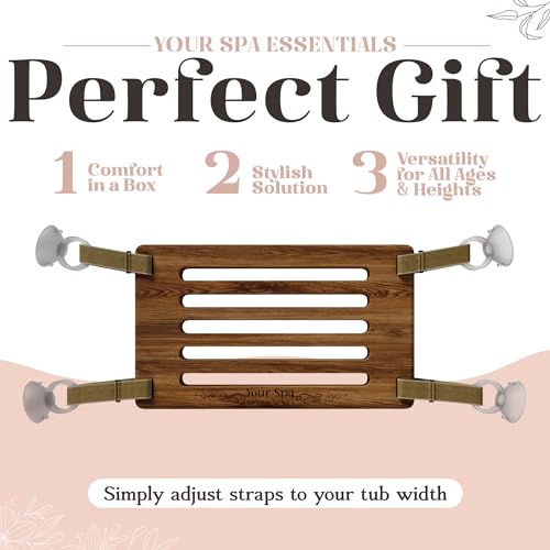 • Your Spa Essentials Wooden Bathtub Foot Rest - Portable Bathroom Foot Rest with Heavy Duty Suction Cups - Non Slip Bathtub Footrest with Large Strong Suction Cups - Bathtub Accessories for Relaxation