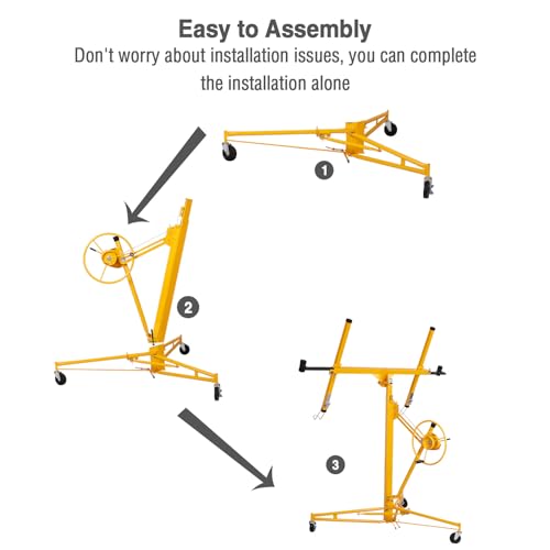 • Lyromix Drywall Lift Panel Hoist Dry Wall Rolling Panel, 11FT Sheetrock Lift 150LBS Heavy Duty Lifter, Construction Tools with Adjustable Telescopic Arm & 3 Lockable Wheels (Bright Yellow)