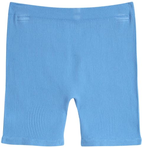 LaLa Girls' Active Shorts Set - 2 Piece Seamless Ribbed Crop Tank Top Bralette with Bike Shorts - Activewear for Girls (7-14), Size 14, Blue