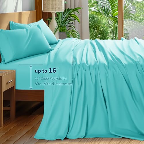 • Shilucheng 100% Cotton Sheets Set - 600 Thread Count,Luxury Egyptian Cotton Bed Sheets,5-Star Hotel Quality Sheets, Breathable & Cooling, 16 Inch Deep Pocket - 4 Piece (Seafoam, Full)