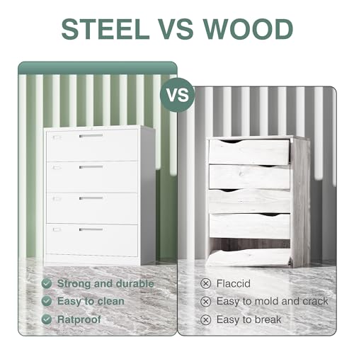 • Letaya 4 Drawer File Cabinet with Lock, Metal Lateral Filing Cabinet Wide Office Organization Storage for Home Office Hanging Letter/Legal/F4/A4 (White-Requires Installation)