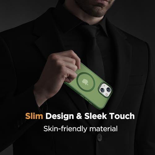 • Miracase Magnetic for iPhone 14 Case 6.1 inch (Compatible with MagSafe)(with 2X Screen Protectors) Military-Grade Protection, Anti-Fingerprint Translucent Matte Phone Case Cover, Dark Green