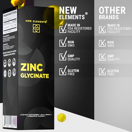 New Elements Zinc Supplements 50mg | Liquid Zinc Supplement | Zinc Glycinate Drops for Adults | Supports Immune Health | Metabolism | Skin Care Supplement | Non-GMO | Vegan | Gluten-Free, 2 Fl Oz (Pack of 1)