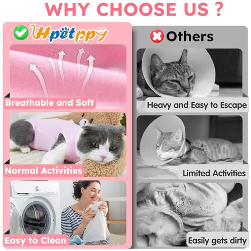 • Hpetppy Cat Recovery Suit, Breathable Cat Surgery Recovery Suit Female, Cat Onesie for Cats After Surgery Spay Surgical Abdominal Wound Skin Diseases Cone of Shame Alternative (Pink,S)