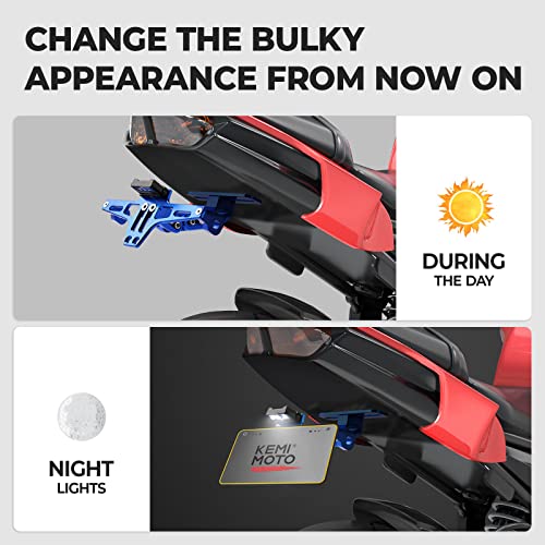 KEMIMOTO Motorcycle License Plate Bracket Fender Eliminator Kit Universal Motorcycle Tail Tidy License Plate Holder Mount Blue