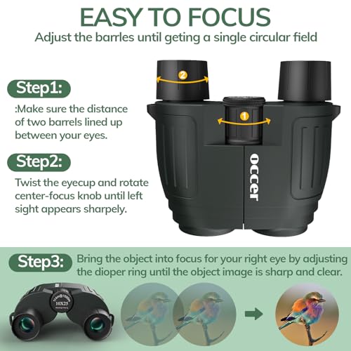 • occer 10x25 Compact Binoculars for Adults and Kids - HD Binoculars High Powered Easy Focus Binoculars Lightweight with Low Light Vision for Bird Watching Outdoor Hunting Travel Hiking