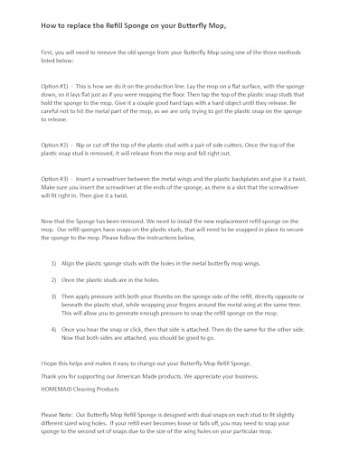 • HOMEMAID® Cellulose Butterfly Mop Replacement Refill Sponge - $8.99 Each (Made in USA)