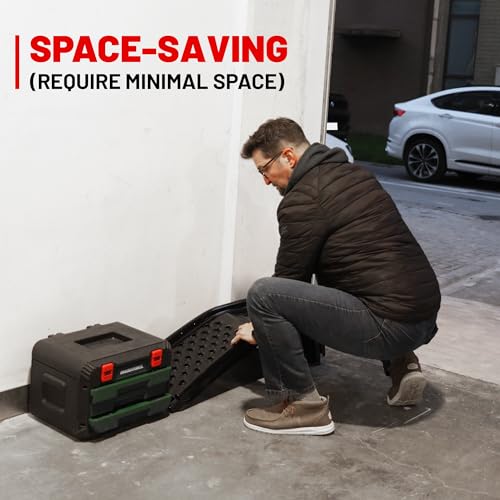 • Rockland 4 Ton 8000 LBS Solid Steel Car Ramp Set, 35" L x 13" W x 9" H, Heavy Duty Auto Truck Ramps for Oil Change and Car Repair, Ideal for Easy Home Garage Maintenance (Pack of 2)