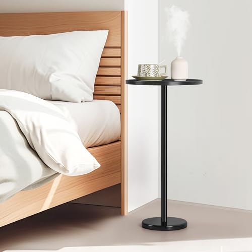 • Black Drink Table Small Round Pedestal Side Table with Marble Base Modern Cocktail Table for Patio Sofa Couch Chair, Black