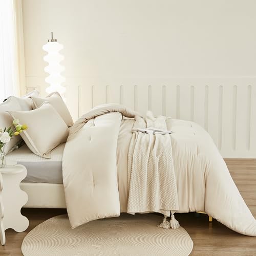 • Litanika Oversized King Comforter 128x120 Beige, 3 Pieces Lightweight Solid Bedding Comforter Set, All Season Fluffy Bed Set (1 Comforter & 2 Pillowcases)