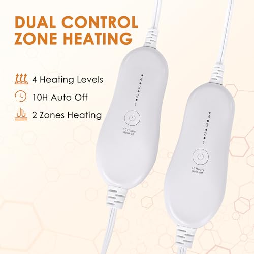 • Heated Mattress Pad King Size Dual Control, Electric Mattress Pad King, 78" x 80", Fast Heating Bed Warmer with 4 Heating Levels & 10 Hour Auto Off, Fit Up to 17" Deep Pocket, Machine Washable