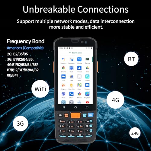 • Bisofice KP36 Android 11.0 Handheld Mobile PDA Terminal Machine Data Collector Inventory Machine NFC Function 4G WiFi BT with 4 Inch Touchscreen 1300W Rear Camera for Small Business Warehouse
