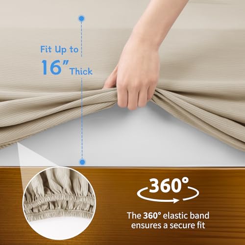 Shilucheng 100% Cotton Sheets King Size 4pcs - Ultra Breathable & Cooling Hole Structures Bed Sheets, 16" Deep Pocket, Perfect for Hot Sleepers, Hotel Bedding Sheets (Beige), 19 - Beige(cotton)