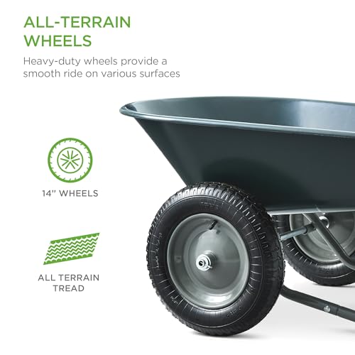 Best Choice Products Dual-Wheel Home Utility Yard Wheelbarrow Garden Cart w/Built-in Stand for Lawn, Gardening, Construction - Dark Gray, 5 cu ft